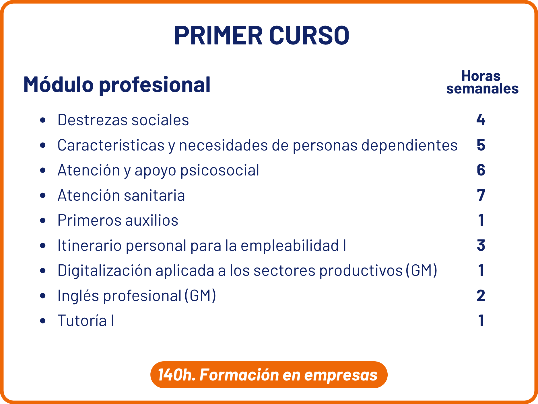 Las asignaturas se organizan según el Anexo XLI de la Orden de Grado Medio.